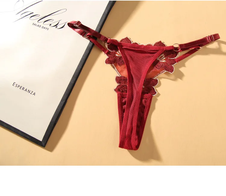 Mesh Hollow Thong Low Waist Embroidery Is Adjustable Lingerie G-string Homewear Intimates Female Sexy Women Underwear Bra Set